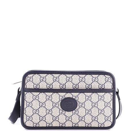 Gucci Pre-Loved Interlocking G Patch Camera Bag GG Coated Canvas Mini, Blue