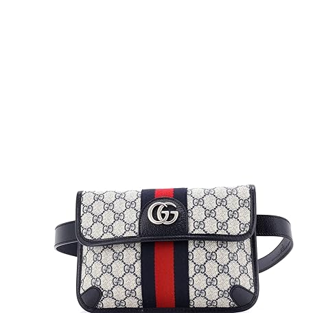 Gucci Pre-Loved Ophidia Flap Belt Bag GG Coated Canvas with Leather, Blue