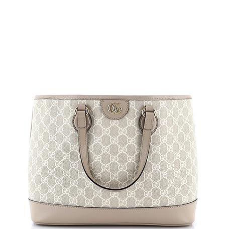 Gucci Pre-Loved Ophidia Top Handle Shopping Tote GG Coated Canvas and Leather Small, Neutral