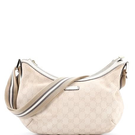 Gucci Pre-Loved Saddle Zip Messenger Bag GG Canvas with Leather Medium, White