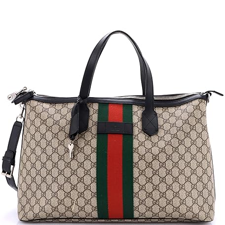 Gucci Pre-Loved Web Duffle Bag GG Coated Canvas Medium, Black