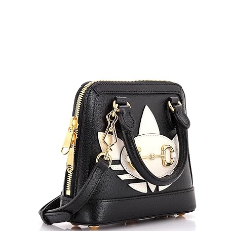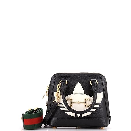 Gucci Pre-Loved x Adidas Horsebit 1955 Top Handle Bag Leather with Applique Mini, Black