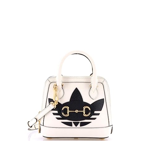 Gucci Pre-Loved x Adidas Horsebit 1955 Top Handle Bag Leather with Applique Mini, White