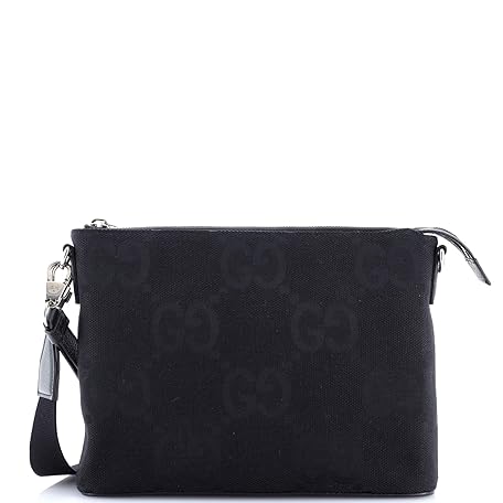 Gucci Pre-Loved Zip Messenger Bag Jumbo GG Canvas, Black