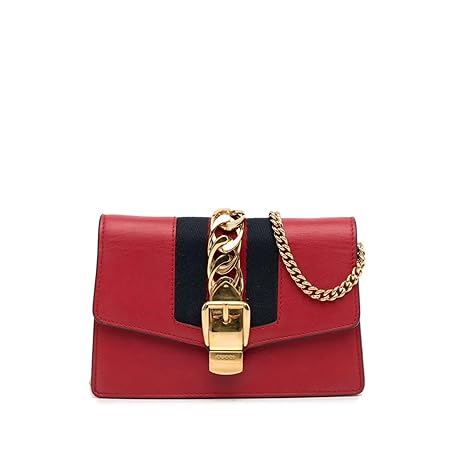 Gucci Red Sylvie Leather Small Mini Red Gold Cruise Handbag Bag Italy Purse NEW