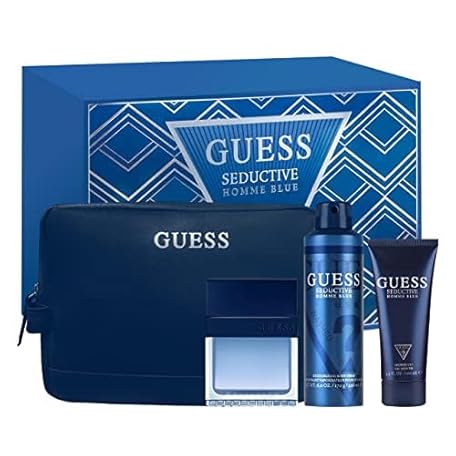 • Guess Seductive Homme Blue 3.4oz EDT Spray, 6.0oz Deodorant Body Spray, 3.4oz Shower Gel, Pouch Men 4 Pc Gift Set