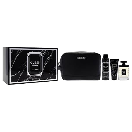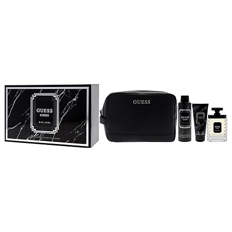 Thông tin sản phẩm Guess Uomo for Men - 4 Pc Gift Set 3.4oz EDT Spray, 6oz Deodorizing Body Spray, 3.4oz Shower Gel, Pouch