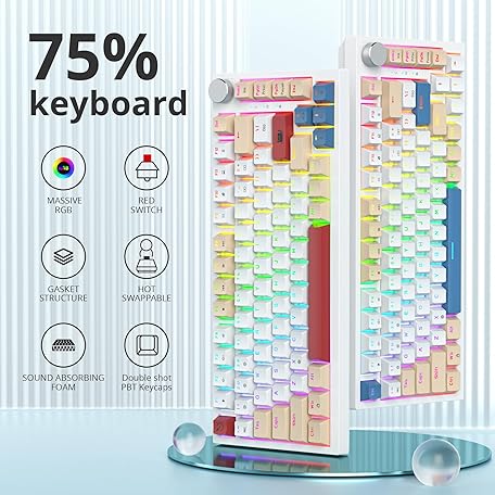 Guffercty kred 75% Retro Keyboard with Knob, Custom Gasket Mounted Wired Mechanical Gaming Keyboard 75 Percent RGB Hot Swap for Mac/Windows/Linux (Gasket 82 Soy Milk)
