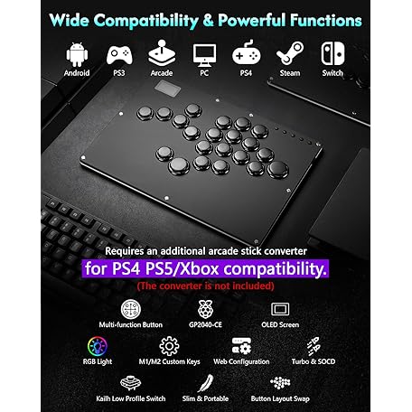 Thông tin sản phẩm GuileKeys Leverless Controller Arcade Stick GK-21, All-Button Arcade Controller 21Keys for PS4/PS3/PC/Switch(PS5 w/Converter), Arcade Fight Stick with RGB/Turbo/Hot-Swap/Low Profile Switch Black