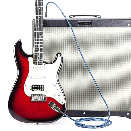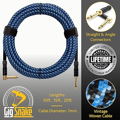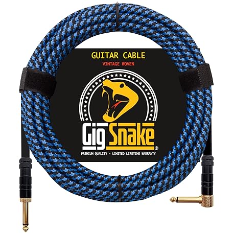 Guitar Cable 15 ft - 1/4 Inch Right Angle Blue Instrument Cable - Professional Quality Electric Guitar Cord and Amp Cable - Low Noise Bass and Guitar Lead - Reliable Cords for a Clean Clear Tone