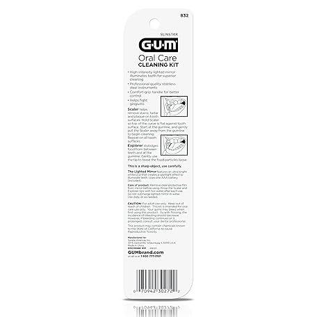 Thông tin sản phẩm GUM Oral Care Dental Cleaning Kit, Dental Mirror with Light, Explorer Pick, and Dental Scaler, Professional Quality Stainless Steel Dental Tools, Easy-Grip Handle (Pack of 1)