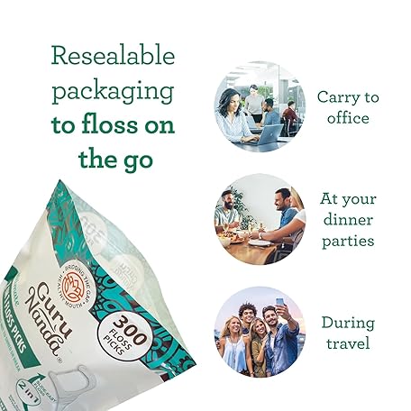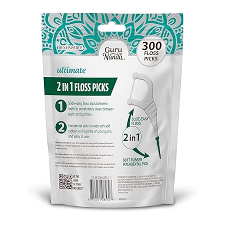Thông tin sản phẩm GuruNanda 2 in 1 Dental Floss Picks - Non-Slip Grip Handle, Slide Easy, No Break or Shred Flosser - Complete Oral Care with Interdental Pick for Healthy Teeth & Gums - Mint Flavor, 300 Count (1 Pack)