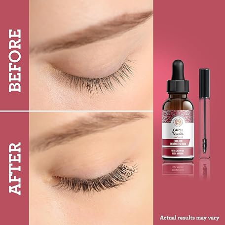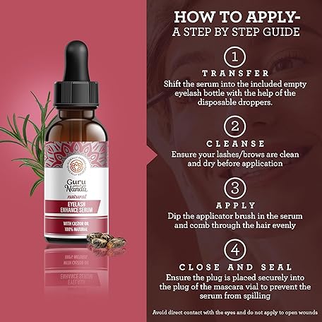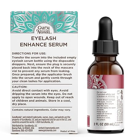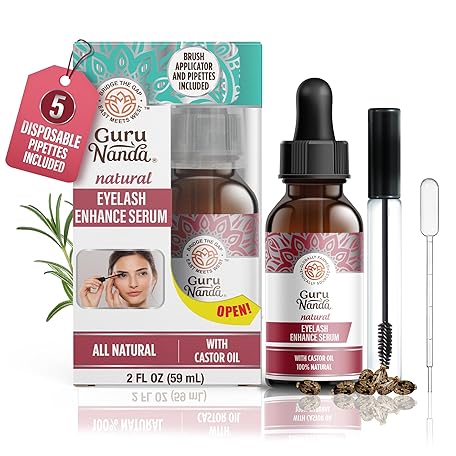Thông tin sản phẩm GuruNanda Natural Castor Oil Eyelash Enhance Serum with Rosemary Oil - Brush Applicator & 5 Pipettes, Helps Natural Hair Growth for Eyebrows & Beards, 2 Fl Oz