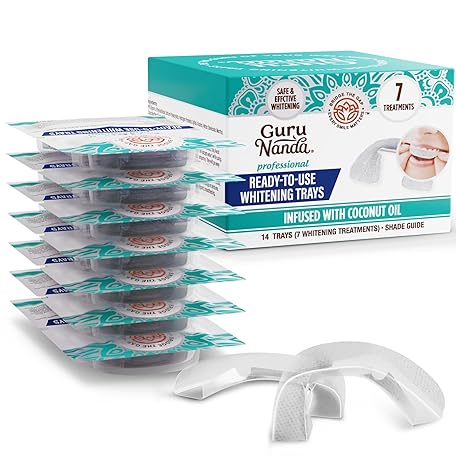 Sản phẩm GuruNanda Ready-to-Use Prefilled Whitening Trays (7 Treatments) with 8% Hydrogen Peroxide to Remove Surface Stains, Fast & Easy Teeth Whitening for Sensitive Smiles đang được bán với giá ưu đãi là $34.8691 tại nước Mỹ.