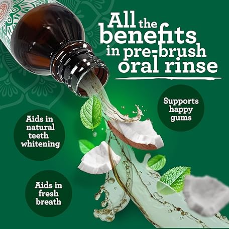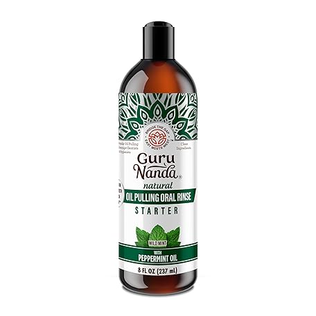 • GuruNanda Starter Pulling Oil Mouthwash for Natural Teeth Whitening, Coconut and Peppermint Oil for Fresh Breath & Happy Gums, Alcohol-Free, 8 Oz