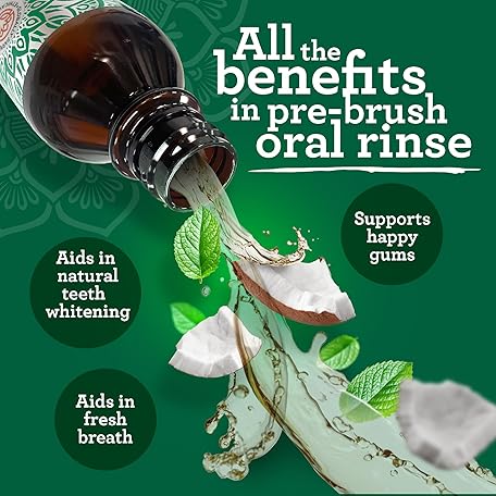 Thông tin sản phẩm GuruNanda Starter Pulling Oil Mouthwash for Natural Teeth Whitening, Coconut and Peppermint Oil for Fresh Breath & Happy Gums, with Tongue Scraper, Alcohol-Free, 2X8 Oz