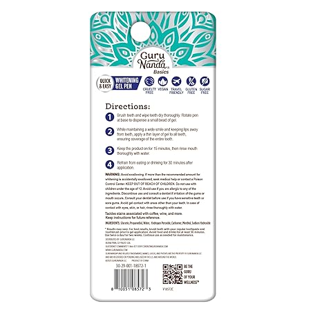 Thông tin sản phẩm GuruNanda Teeth Whitening Pen,(0.06 fl oz)-20 Uses, Vegan & Gentle on Teeth Pro Formula - Hydrogen Peroxide Whitening Gel Pen, Cruelty-free, Mint Flavor