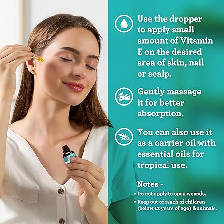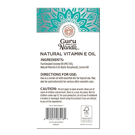 Thông tin sản phẩm GuruNanda Vitamin E Oil, 2 Fl Oz Pure & Natural, 15,000 IU per Bottle, for Skin, Hair, Face, Nails & Scars, With Coconut Oil to Help Nourish & Moisture, Non-GMO & Vegan