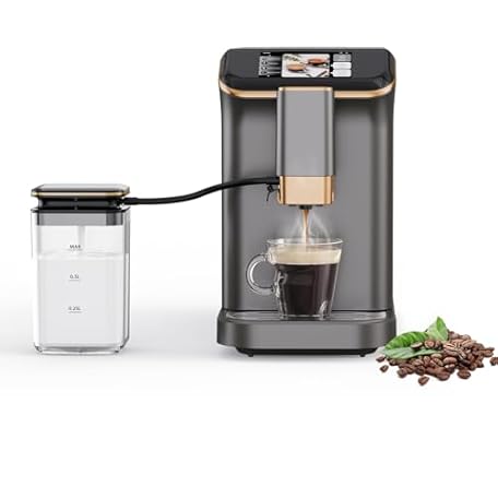 GustoWave Espresso Maker With Milk Frother - Fully Automatic, 4-Beverage Options, Built-In Grinder, Intuitive Touch Display, and Sleek Gunmetal Finish