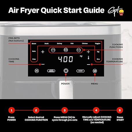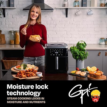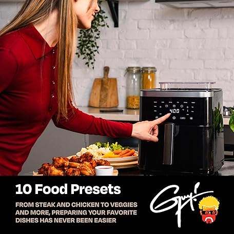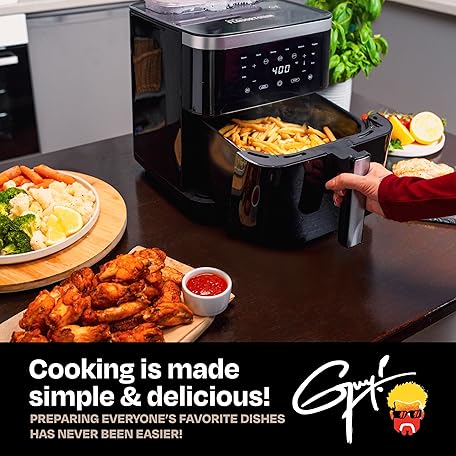Thông tin sản phẩm Guy Fieri's Flavortown 6.5 Quart Steam Air Fryer with Moisture Lock Technology – Programmable Steamer and Air Fryer Combination, Temperature Control, 10-Presets, 1700 Watts