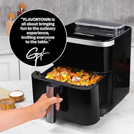 Thương hiệu Guy Fieri's Flavortown là cái tên nổi tiếng được rất nhiều khách hàng trên thế giới chọn lựa. Với kiểu dáng đẹp mắt, sang trọng, sản phẩm Guy Fieri's Flavortown 6.5 Quart Steam Air Fryer with Moisture Lock Technology – Programmable Steamer and Air Fryer Combination, Temperature Control, 10-Presets, 1700 Watts là sự lựa chọn hoàn hảo nếu bạn đang tìm mua một món cho riêng mình.
