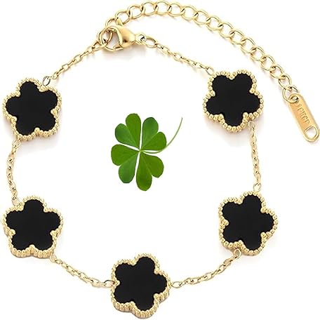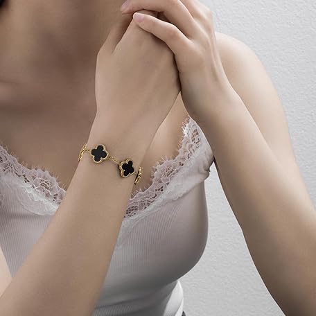 Gyeodpar Luxury Bracelets for Women, 18K Gold Plated Clover for Women Lucky Four Leaf Link Bracelets Jewelry Gifts Trendy for Women Teen Girls