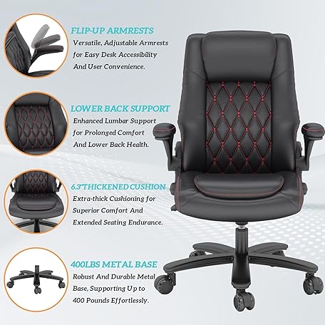 GYI High Back Executive Office Chair, Big and Tall Office Desk Chair 400LBS with Lumbar Support, Flip-up Armrests, Rubber Wheels, Black