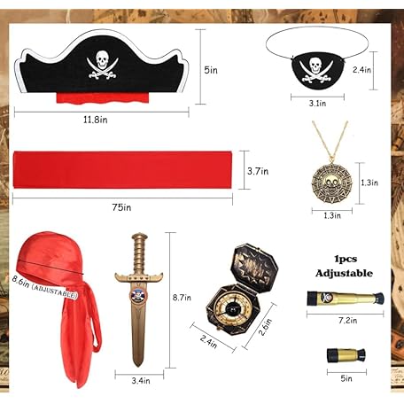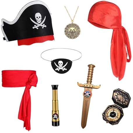 GZ-LAOPAITOU 8 Pcs Pirate Accessories Set Kids Captain Role Play Pirate Costume Accessories Halloween Cosplay, Black