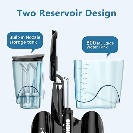 Thông tin sản phẩm H2ofloss Water Flosser for Teeth, Braces, Professional Water Teeth Cleaner with 800ML Water Tank and 5 Settings, 13 Multifunctional Nozzles and Hygienic Nozzles Storage Compartment for Family (Black)