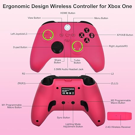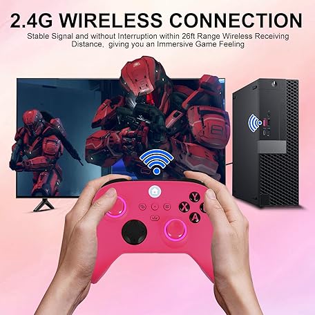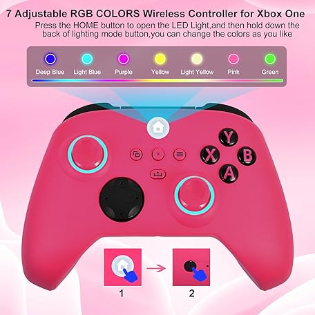 Thông tin sản phẩm HaeBorl Xbox One Controller, RGB LED Light 2.4GHz Wireless Controller Compatible with Xbox One X/S Xbox Series X/S with 3.5mm Audio Headphone Jack & 800mAh Rechargeable Built-in Battery, Deep Pink