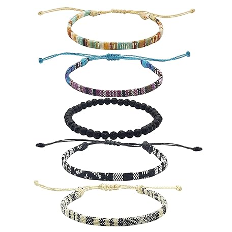 Haefjric 5 Pcs Surfer Beach Bracelet Men Women, Bracelets For Men, Handmade Boho Ankle Bracelet Summer Hippie Jewelry Beachy Braided Bracelets Adjustable for Men Women