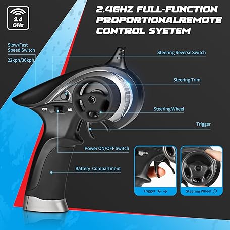 Thông tin sản phẩm HAIBOXING 1:18 Scale All Terrain RC Car 18859, 36 KPH High Speed 4WD Electric Vehicle with 2.4 GHz Remote Control, 4X4 Waterproof Off-Road Truck with Two Rechargeable Batteries