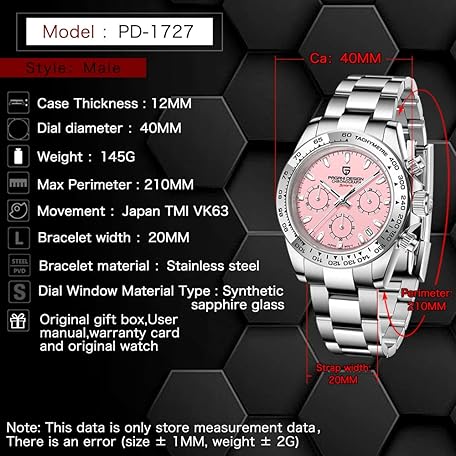 Sản phẩm HaiQin Pagani Design Classic Men's Multifunctional Chronograph Full Stainless Steel Japanese VK63 Quartz Movement Tester 100m Waterproof Luxury Business Watch đang được bán với giá ưu đãi là $108.9891 tại nước Mỹ.