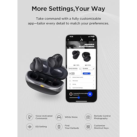 HAKII Open Ear Wireless Earbuds, Bluetooth 5.4 Ergonomic Clip on Bluetooth Earbuds with Stereo Sound/ENC, Touch Control Open Ear Headphones, IPX5 Waterproof Running Headphones for Sports, Fitness