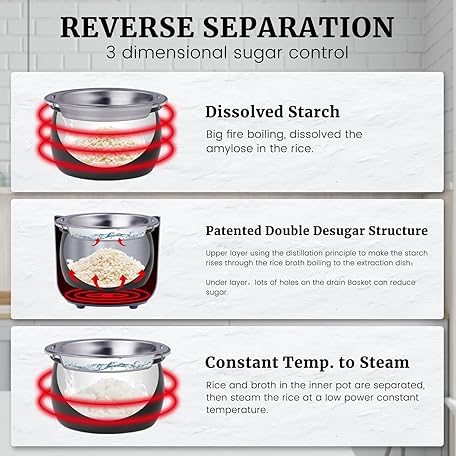 Sản phẩm Hakka Low Carb Rice Cooker, 7 Functions Desuger Rice Pot 4 Cups Uncooked Rice with Stainless Steel Steamer MINI Smart Cooker Non-stick Inner 24H Delay Timer đang được bán với giá ưu đãi là $87.1891 tại nước Mỹ.