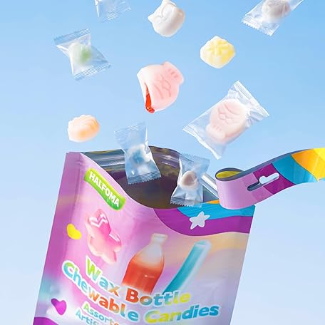 Thông tin sản phẩm Halfoma Chewy Wax Bottle Candy with 2 Giant Fish - 20-Piece Assorted Fruit Flavors Chew Treats for Kids, Party Favors, Classroom Supplies,6.3oz