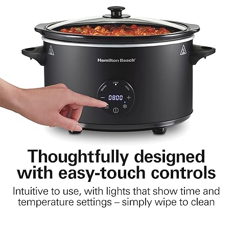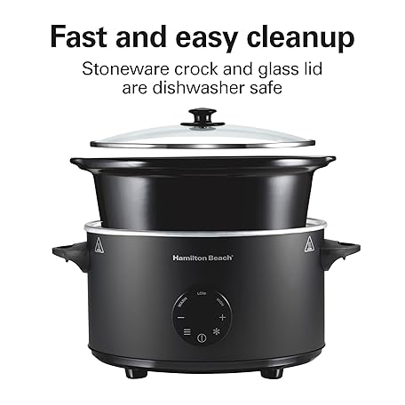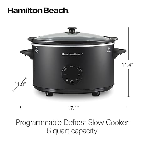 Thông tin sản phẩm Hamilton Beach 6 Quart Set & Forget Programmable Slow Cooker with Defrost Function, Flexible Programming, Adjustable Countdown Timer, Large Dishwasher Safe Stoneware Crock and Glass Lid, Black (33765)