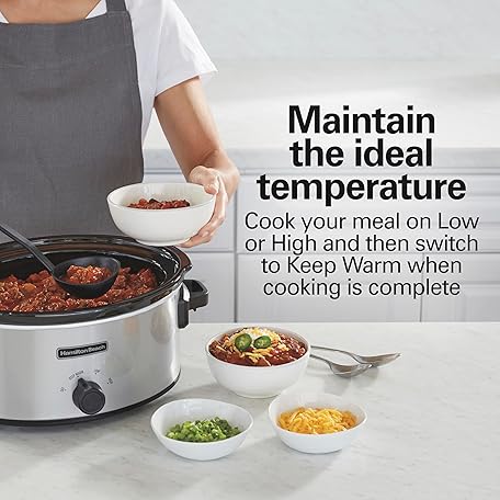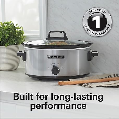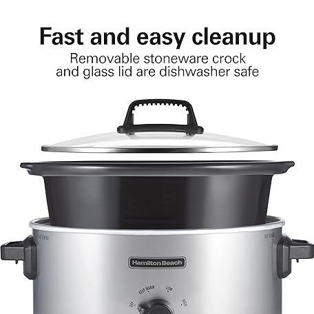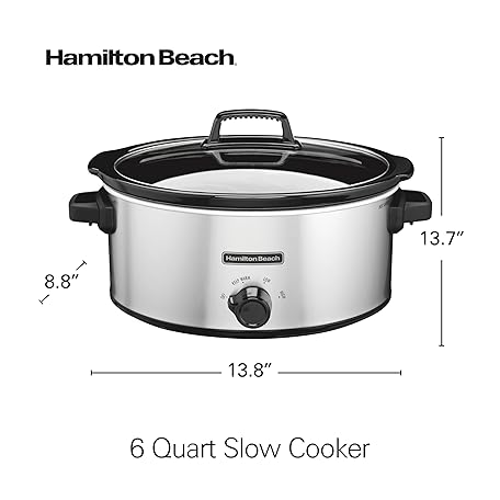 Thông tin sản phẩm Hamilton Beach 6-Quart Slow Cooker with 3 Cooking Settings, Dishwasher-Safe Stoneware Crock & Glass Lid, Silver (33665G)