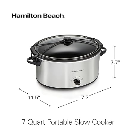 Thông tin sản phẩm Hamilton Beach 7-Quart Portable Slow Cooker Serves 8+, Dishwasher Safe Crock, Lid Latch Strap for Travel, Brushed Silver