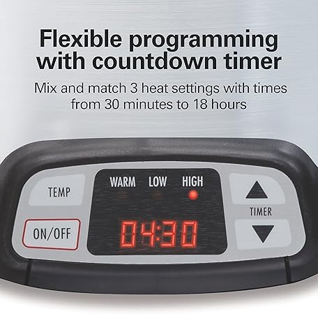 Thông tin sản phẩm Hamilton Beach 8 Quart Programmable Slow Cooker with Three Temperature Settings, Dishwasher Safe Crock and Lid, Silver (33480)