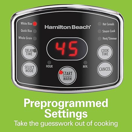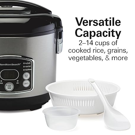 Thông tin sản phẩm Hamilton Beach Digital Programmable Rice Cooker & Food Steamer, 14 Cups Cooked (7 Uncooked) With Steam & Rinse Basket, Stainless Steel (37548)