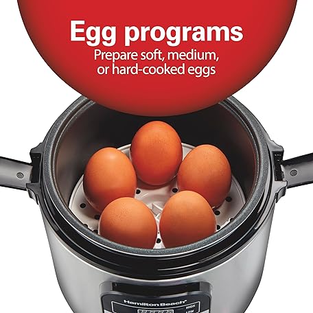Thông tin sản phẩm Hamilton Beach Digital Programmable Rice Cooker & Food Steamer, with Slow Hard-Boiled Egg Functions, Egg/Steam Tray, Small & Compact, 6 Cups Cooked (3 Uncooked), Stainless Steel (37524)