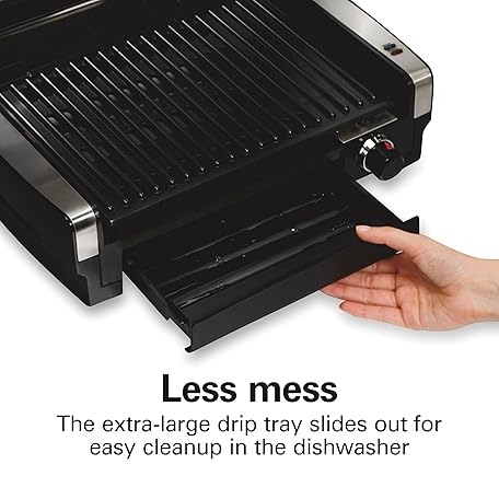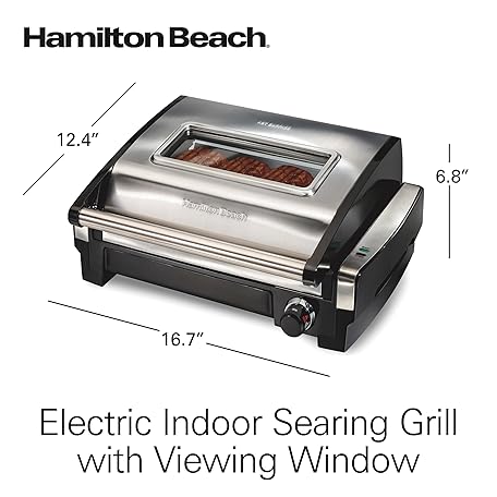Thông tin sản phẩm Hamilton Beach Electric Indoor Searing Grill with Viewing Window & Adjustable Temperature Control to 450F, 118 sq. in. Surface Serves 6, PFAS-Free Removable Nonstick Grate, Stainless Steel