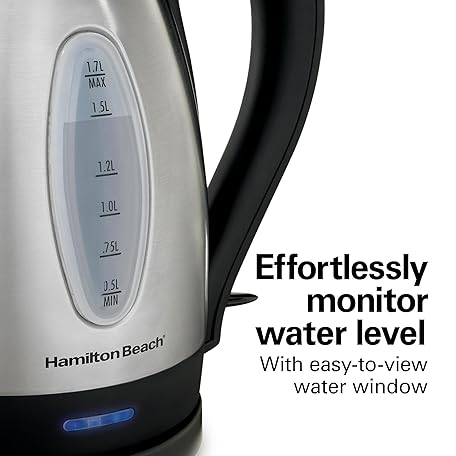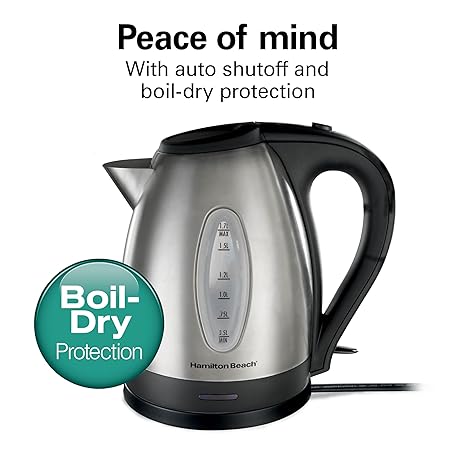 Thông tin sản phẩm Hamilton Beach Electric Tea Kettle, Water Boiler & Heater, 1.7 Liter, Cordless Serving, 1500 Watts for Fast Boiling, Auto-Shutoff and Boil-Dry Protection, Stainless Steel (40880)
