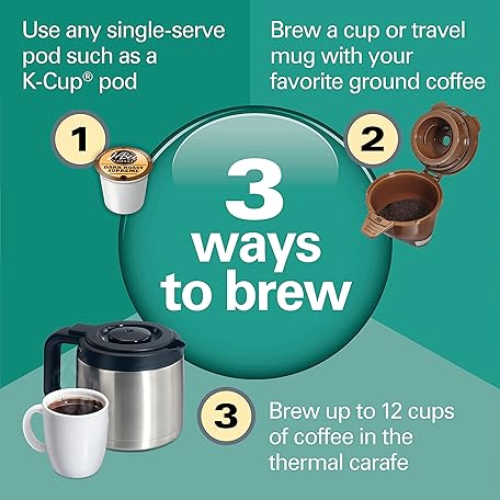 Thông tin sản phẩm Hamilton Beach FlexBrew Trio 2-Way Coffee Maker, Compatible with K-Cup Pods or Grounds, Combo, Single Serve & Full 12c Thermal Pot, Black and Stainless – Fast Brewing