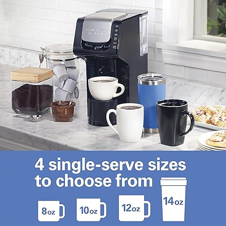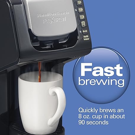 Thông tin sản phẩm Hamilton Beach Gen 4 FlexBrew Single-Serve Coffee Maker with Removable Reservoir, Compatible with Pod Packs and Grounds, 50 oz., 4 Fast Brewing Options, Black