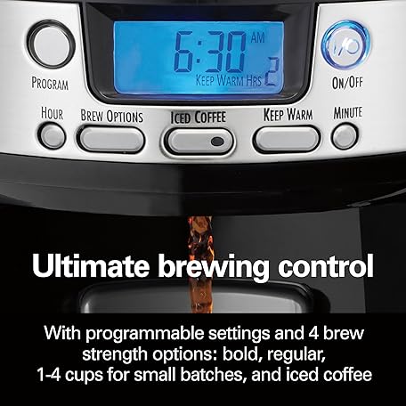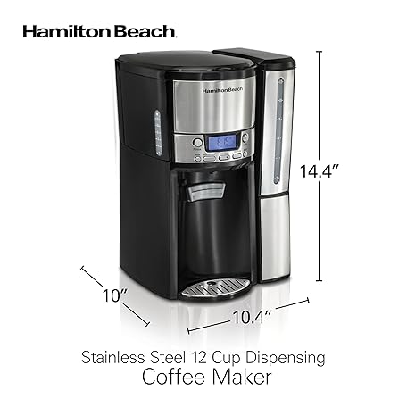 Thông tin sản phẩm Hamilton Beach One Press Programmable Dispensing 12 Cup Coffee Maker with Internal Coffee Pot, Stays Warm and Fresh for Hours, 60 oz. Removable Reservoir, Black & Stainless Steel (47950)