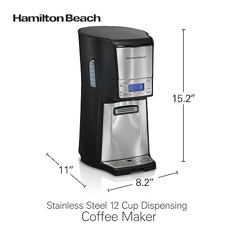 Thông tin sản phẩm Hamilton Beach One Press Programmable Dispensing Drip Coffee Maker with 12 Cup Internal Brew Pot, Removable Water Reservoir, Black & Stainless Steel (48465)