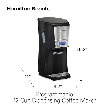 Thông tin sản phẩm Hamilton Beach One Press Programmable Dispensing Drip Coffee Maker with 12 Cup Internal Brew Pot, Water Reservoir, Black with Chrome (48464)