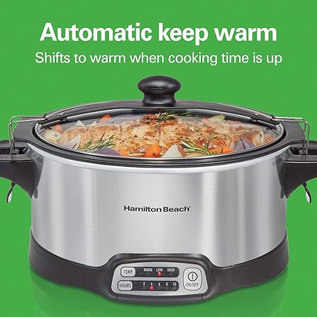 Thương hiệu Hamilton Beach là cái tên nổi tiếng được rất nhiều khách hàng trên thế giới chọn lựa. Với kiểu dáng đẹp mắt, sang trọng, sản phẩm Hamilton Beach Programmable Slow Cooker with 6 Quart Stovetop-Safe Sear & Cook Crock & Travel Lid Lock for Portable Transport, Silver (33663) là sự lựa chọn hoàn hảo nếu bạn đang tìm mua một món cho riêng mình.
